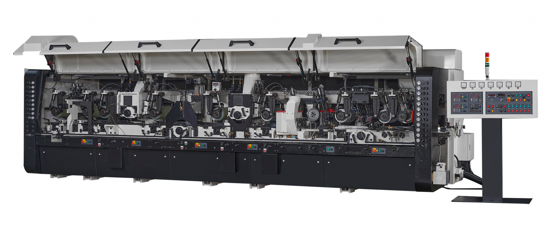 超強的機械結構搭配高速精密主軸及450MM寬送料輪安裝油壓軸外支撐,保證加工時擁有最佳的穩定性。機器上可加裝平面磨刀及成型磨刀裝置,再搭配自動定位系統,提昇操作的方便性和切削的穩定度。